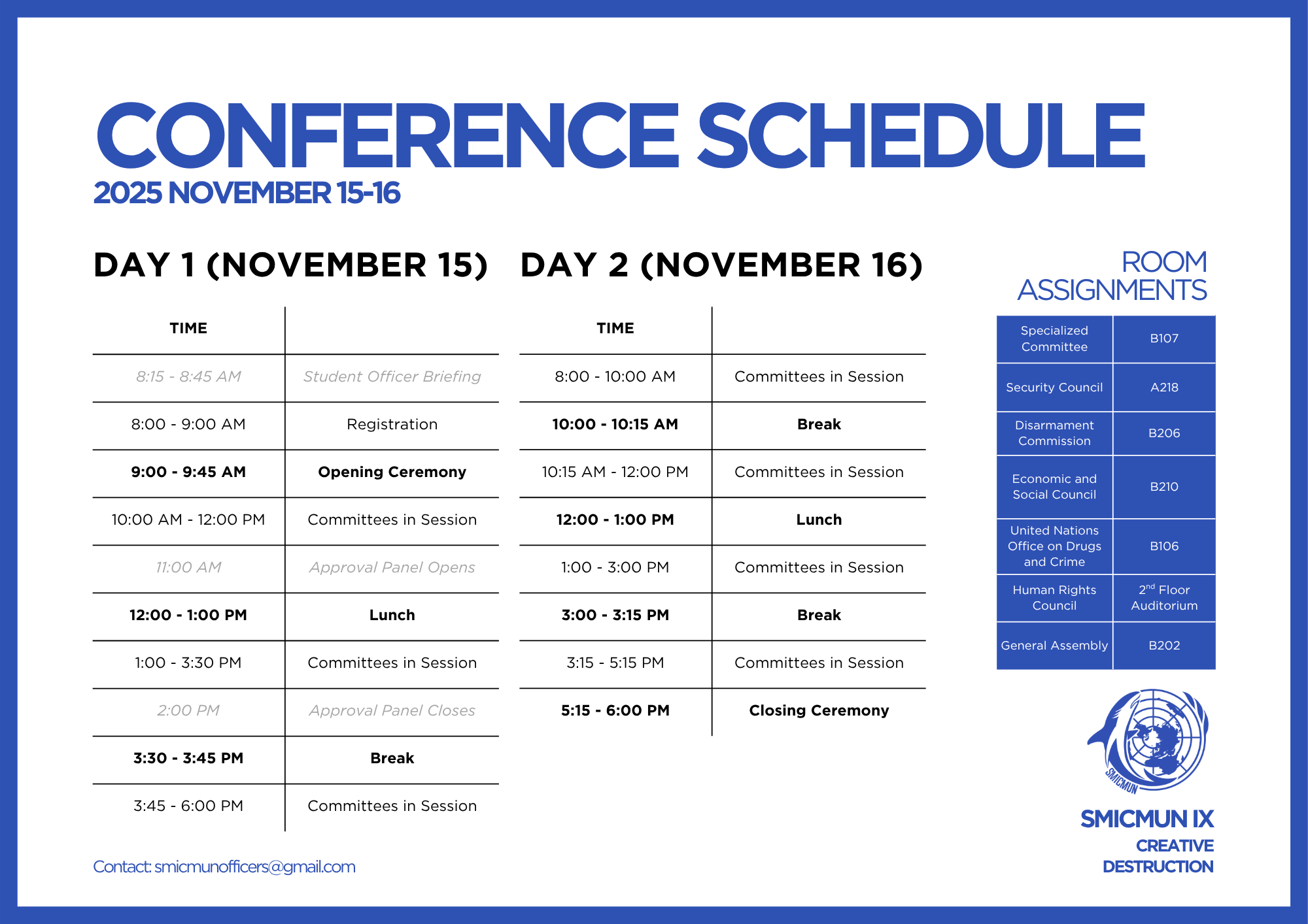 All participants will be expected to exercise a very high standard of personal behavior during the entirety of SMICMUN IX. Please take the time to read through the Delegate Manual to ensure that you are familiar with the procedures, code of conduct, dress code, etc.